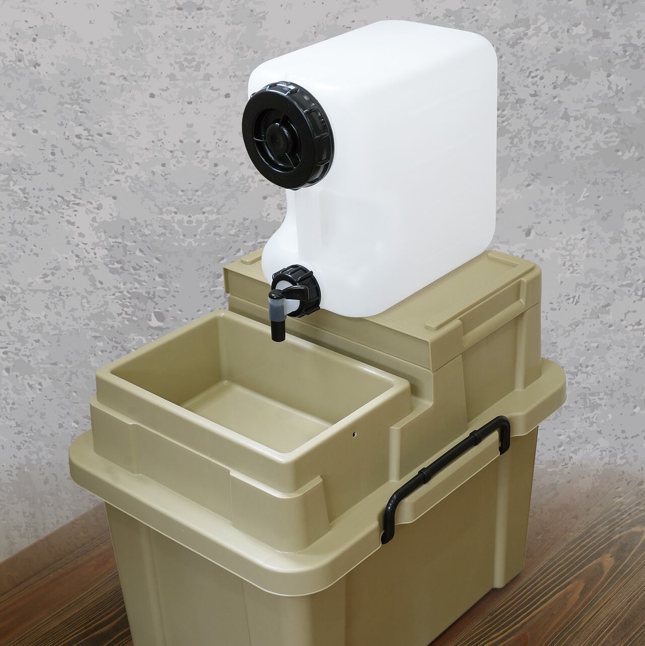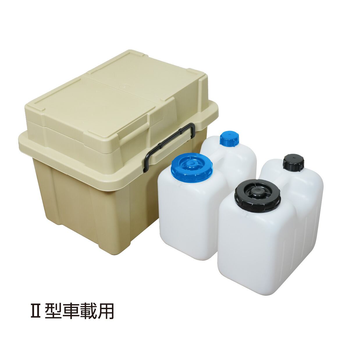 Ⅰ型可搬用は貯水(給水)タンクと排水溜めバケツのセット、Ⅱ型車載用は貯水(給水)タンクと排水溜めタンクのセット。どちらも容量は10リットルです。