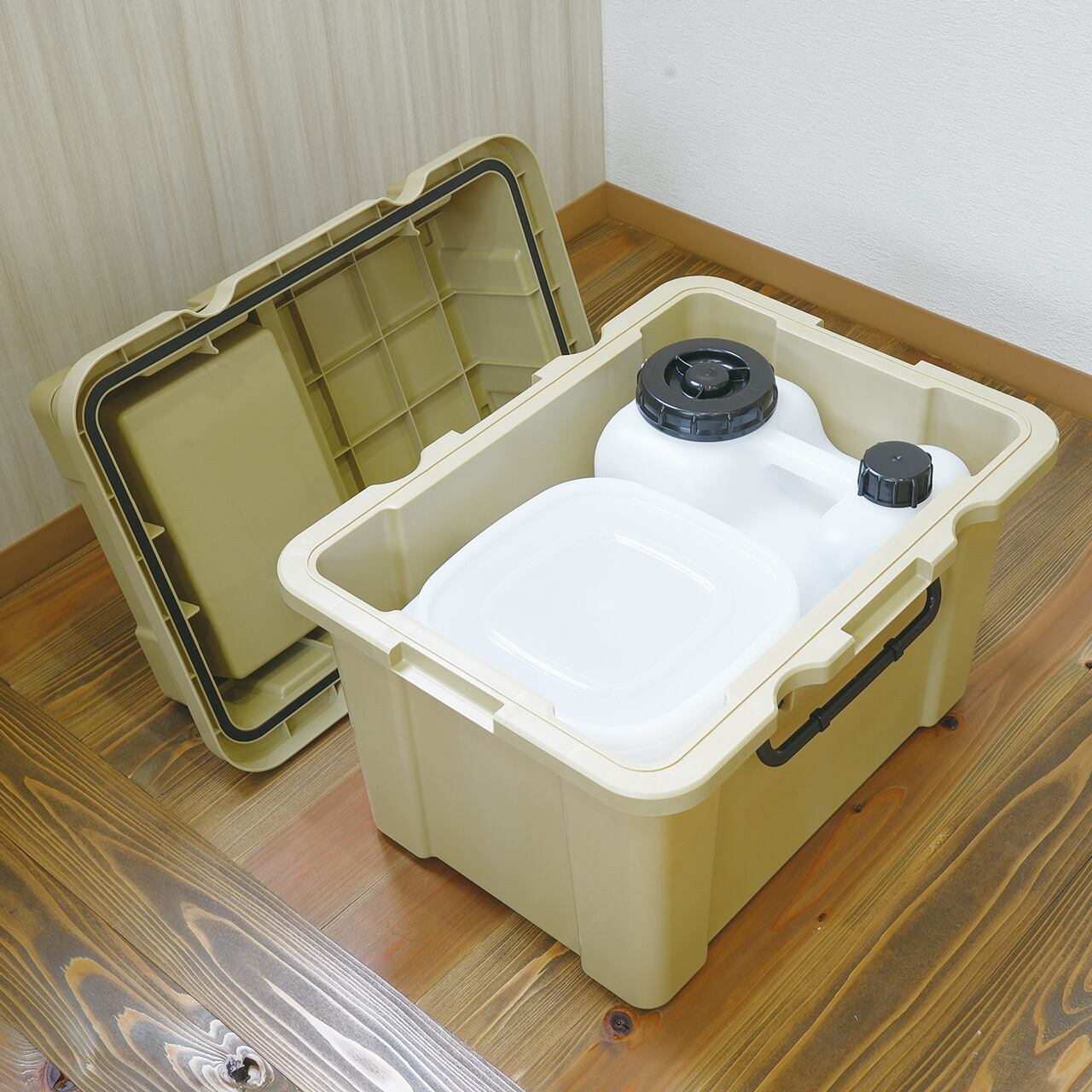 本体:ポリプロピレン(PP)蓋:ポリプロピレン(PP)蓋パッキン:クロロプレンゴムスポンジ取手:ポリプロピレン(PP)