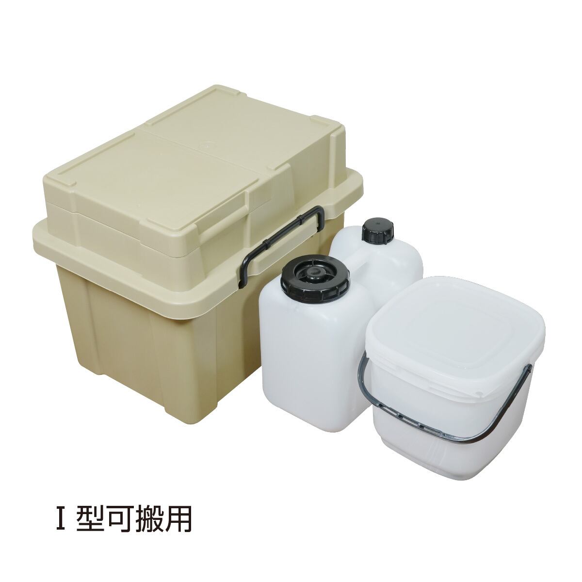 Ⅰ型可搬用は貯水(給水)タンクと排水溜めバケツのセット、Ⅱ型車載用は貯水(給水)タンクと排水溜めタンクのセット。どちらも容量は10リットルです。